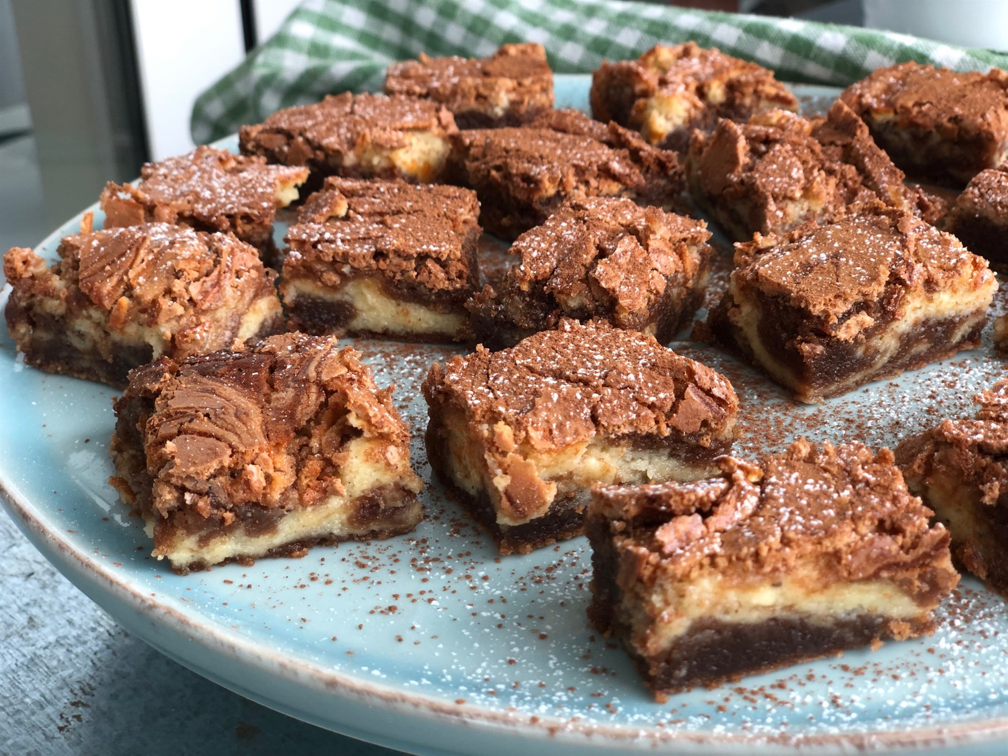 Tvær kökur í einni, súkkulaði og rjómaostur – það getur ekki verið annað en fullkomið. Þessi kaka er mjög vinsæl að bjóða upp á við hvaða tilefni sem er hvort sem það er með sunnudagskaffinu eða í saumaklúbbnum.